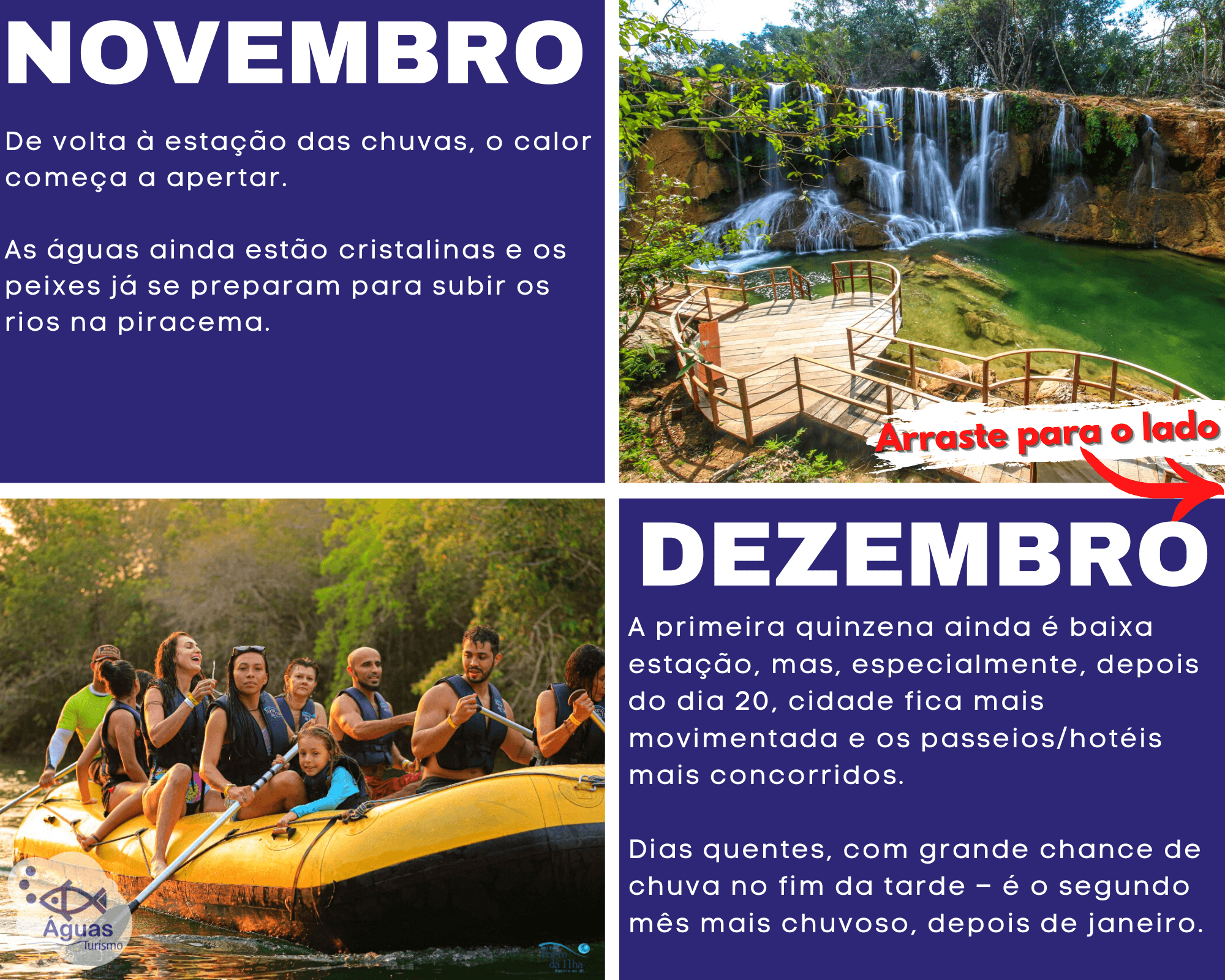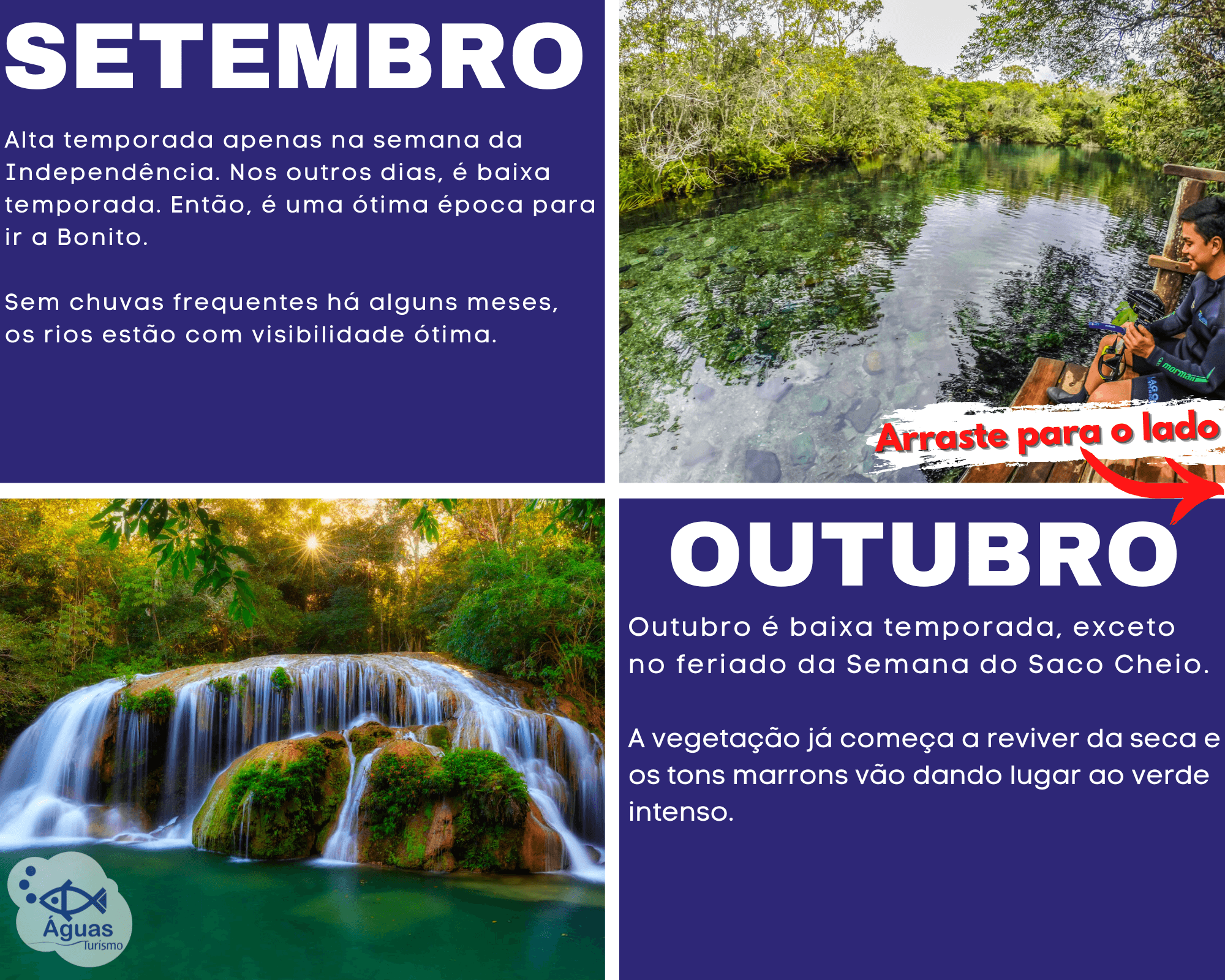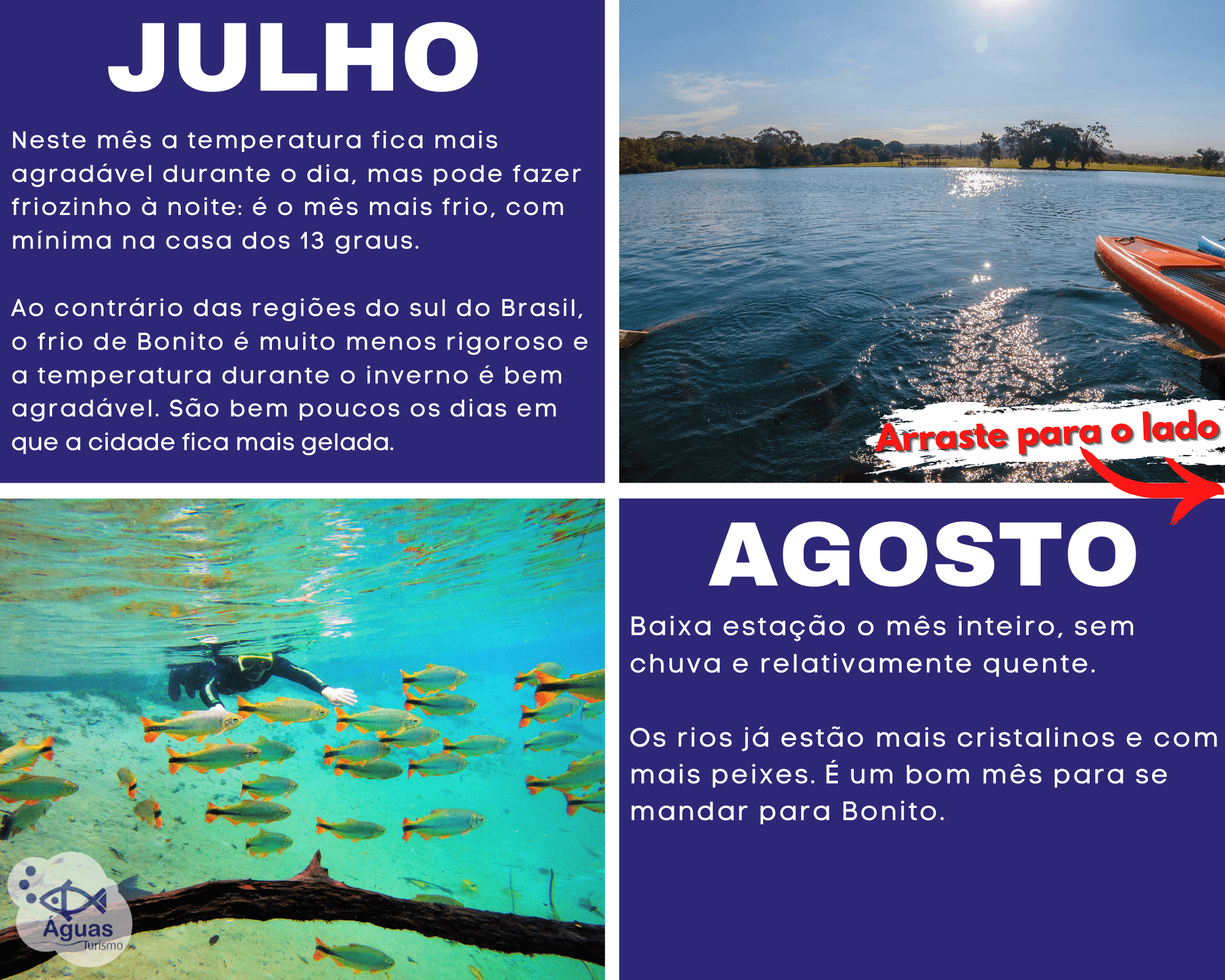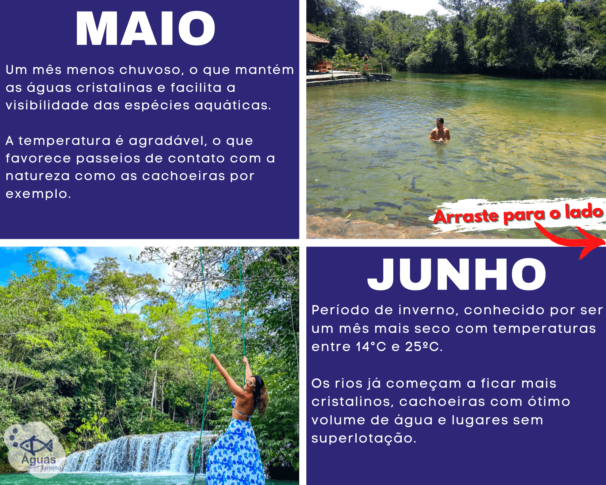 Não existe uma época específica para visitar Bonito, o clima da região é tropical e quente durante todo o ano.